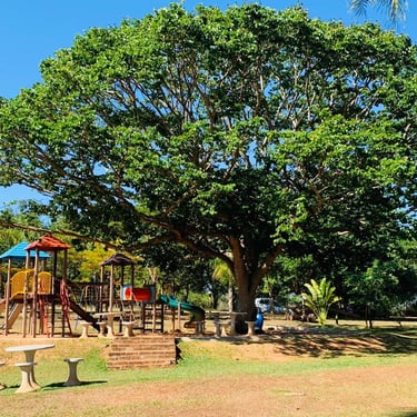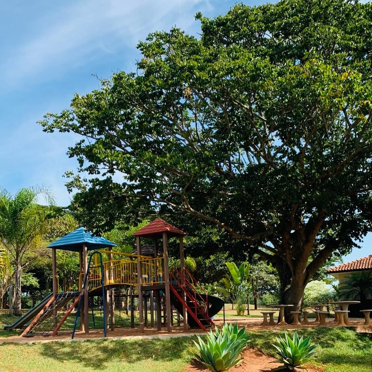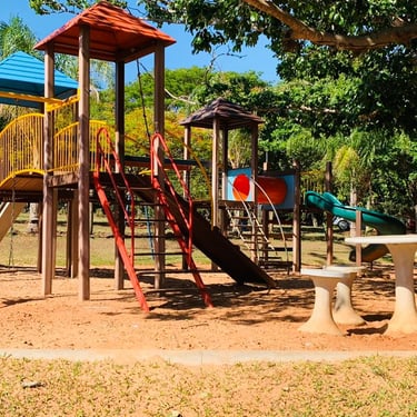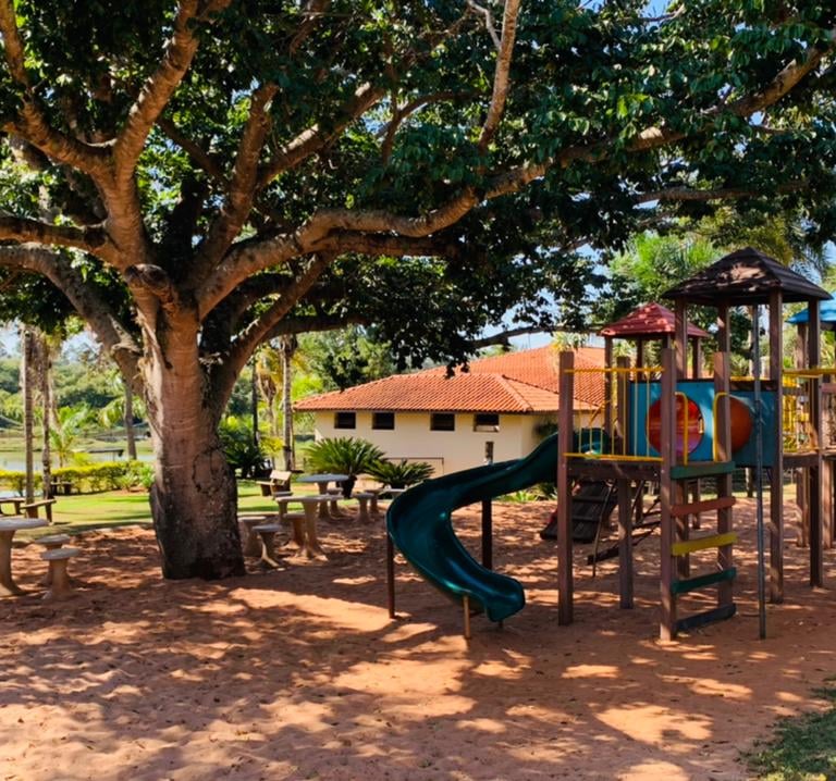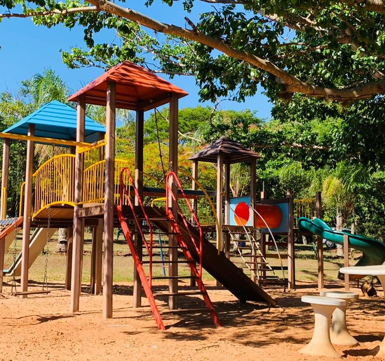 Além da pescaria que os pequenos adoram, eles também vão se divertir muito no nosso Playground com balanço, gira-gira e escorregador.